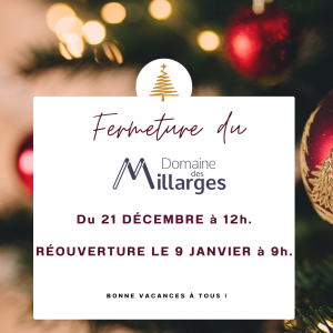 Le domaine des Millarges sera fermé pendant les vacances de Noel, du 21 décembre à 12h jusqu’au 6 janvier compris.